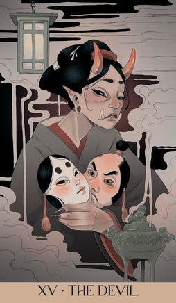 According to Japanese folklore, spirit-like entities called yokai inhabit the Earth. They live beneath the canopy of the forests, below the surface of the seas, or in the most secluded corners of our homes. They can be humanlike, beasts, or even objects; they can be mischievous or peaceful and protective. One thing is certain: through this beautiful tarot deck with art by Marga Biazzi, the yokai are here to guide your path with their cunning and wisdom.