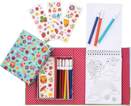 Use the 10 vibrant markers to color in the beautifully illustrated 48-page book. Accent your art with the included stickers. This set comes in a clever book-like box to keep everything organized and ready to travel.
