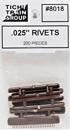These are .025 diameter rivet heads. They are molded in rust-colored styrene with .015 mounting posts.