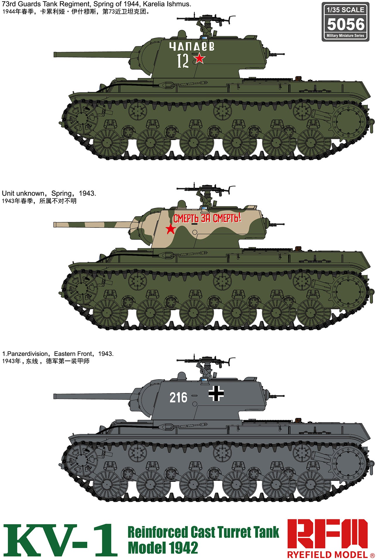 KV-1 with Reinforced Cast Turret Model 1942 (1/35 Scale) Plastic Military Model Kit