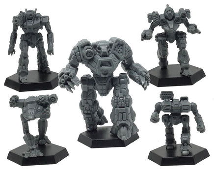 The Clan Ad Hoc Star is a collection of five plastic miniatures for use in the classic BattleTech tabletop and Alpha Strike games. The box also provides five dry-erase cards, which are intended to directly support Alpha Strike gameplay, and five new Clan Pilot Cards.