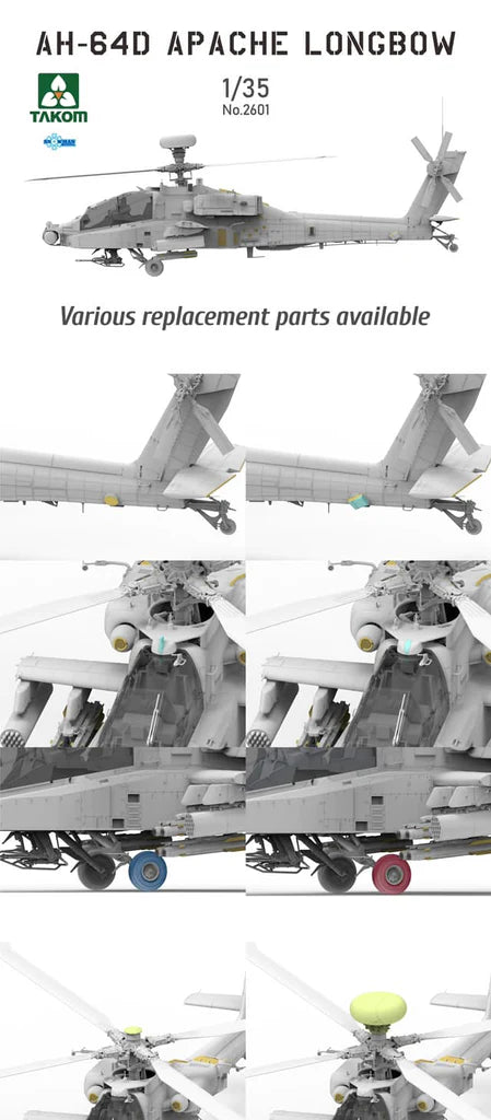 The AH-64 Apache is an American combat helicopter with twin turboshaft engines, tailwheel landing gear, and a tandem cockpit for a crew of two.