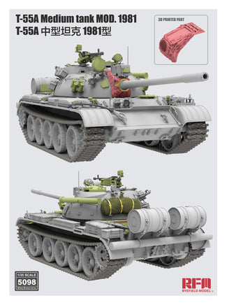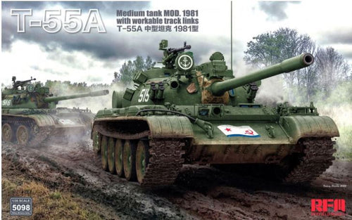 The T-55 is a post-war first-generation medium tank developed in the Soviet Union. The T-55 is equipped with the NBC defense system as standard on the T-54, and is a vehicle with improved engine horsepower, the addition of a servo mechanism and more, and the number of ammunition mounted on the main gun is increased to 43, from 34 on the T-54. The firepower was also enhanced. The T-55A was adopted in 1962, with the 7.62mm fixed machine gun on the right side of the driver's seat removed, and a radiation protection cover attached to the cupola and hatch. The T-55A is classified into two types: the early model produced by 1969, and the late model produced after the 1970s.