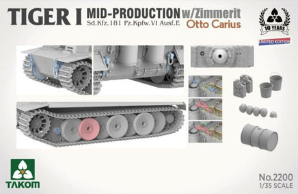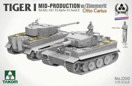Otto Carius figure included. Hatches can be fitted opened or closed. 2 types of link & length tracks with track assembly jig. Metal barrel, photo-etch & clear parts included. Markings for Otto Carius’s tank Red 217 ca.1944.