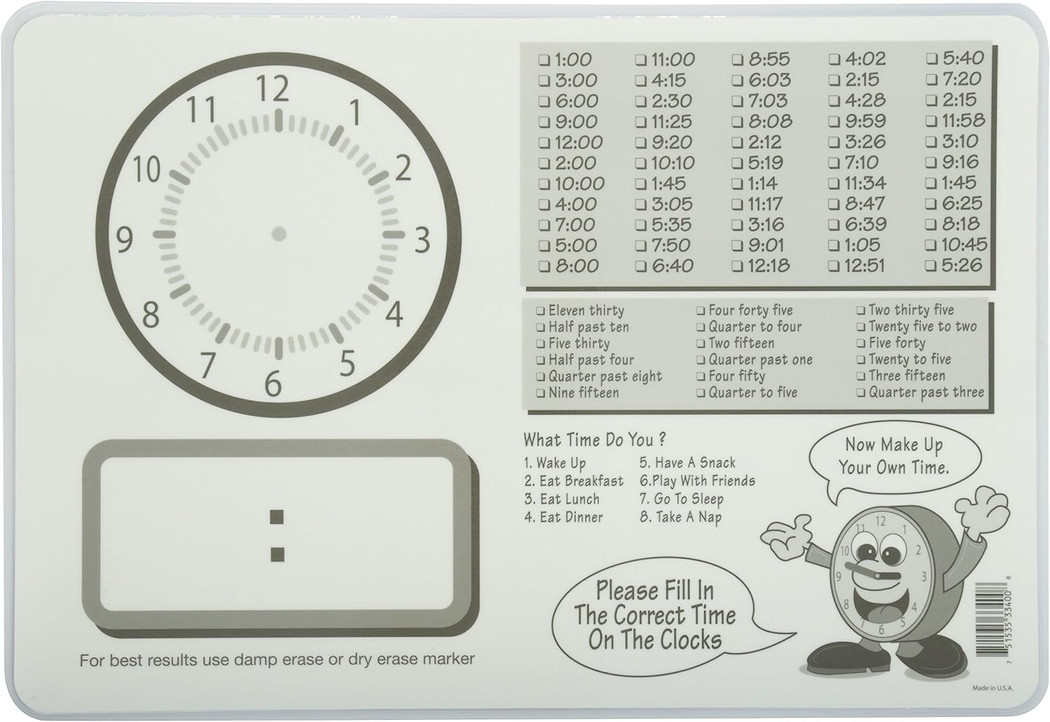 Take the guesswork out of teaching your child the fundamentals of telling time with this placemat! Choosing the Time to Tell Time Placemat is a bold move to help your little one master the basics and see their hard work pay off!