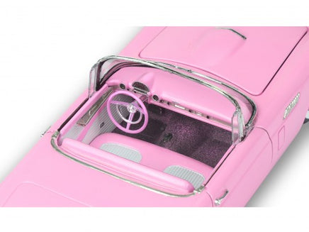 The first generation Ford Thunderbird was produced from 1955 to 1957, the first 2-seat Ford since 1938 and countering Chevrolet’s 1953 introduction of the Corvette. The 1956 Ford Thunderbird 2-door convertible had a base price of $3,150 and over the three-year production period, a total of 53,166 were produced. It was an all-new concept in motoring called the 'personal luxury' car, offering sporty performance in luxury and comfort. For the 1956 model year, rectangular fresh air vents were added to the front fenders and exhaust tips were moved to the ends of the bumper. A “Continental Kit” was added to house the spare tire to increase trunk space. An optional 312 cubic inch V-8 engine was offered to maintain the car’s performance in view of the unavoidable weight increase. To improve rear-quarter visibility with the removable hardtop in place, "porthole" windows were available as a no-cost option.
