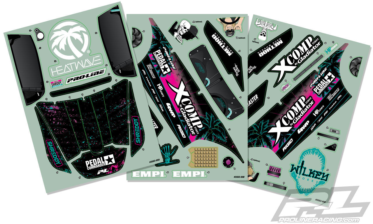 The Blake Wilkey Edition Megalodon is molded in durable Tough-Color Black material, which means you can go full-send without any fear of paint chipping off since the black is infused directly into the material. A fully precut wrap is included to deck out your Megalodon with Blake's sponsors and signature fluorescent pink & teal livery. Window details are also included with optional Wilkey & co-pilot driver figure stickers.