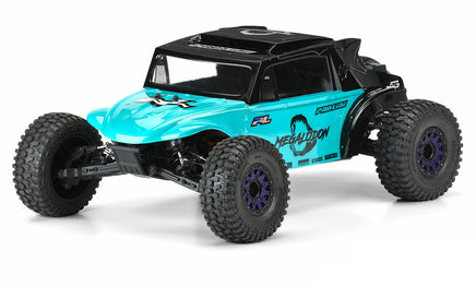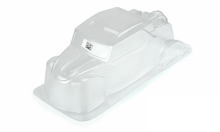 This is a Megalodon Desert Buggy Clear Body. Pro-Line is proud to release a clear version of The Megalodon: a dune-shredding, wheelie-popping, supercharged V8-powered beast of a buggy! Transform the looks of your Slash 2wd or Slash 4x4 with this super scale body! All the scale details of this beast of a buggy are captured including molded engine details, roof-mounted air scoop, add-on rear fenders, and shark-inspired side wings. To create the most scale Megalodon possible, we recommend using Hyrax SCXL 2.2"/3.0" tires for that killer oversized look. This body comes clear so you can customize the look and paint it however you want! Thrash your local bash spot with the new Megalodon body from Pro-Line!