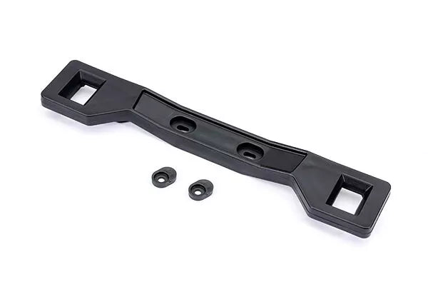 The rear clipless body mount adapter with inserts (2) secures to the front shock tower to provide a firm base for clipless bodies.
