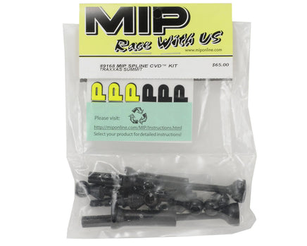 This is an optional MIP Spline CVD Kit and is intended for use with the Traxxas Summit. This MIP CVD Kit replaces the stock plastic drive shafts with Hardened High Strength Alloy. MIP Spline technology accommodates both long and short travel suspensions, as well as high-power electric applications. Includes 6mm bores for the re-designed output shafts. MIP products feature a Wax Coated, Black Oxide finish, for appearance, durability, and protection, and are 100% made in the USA!