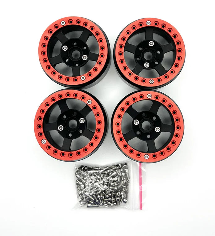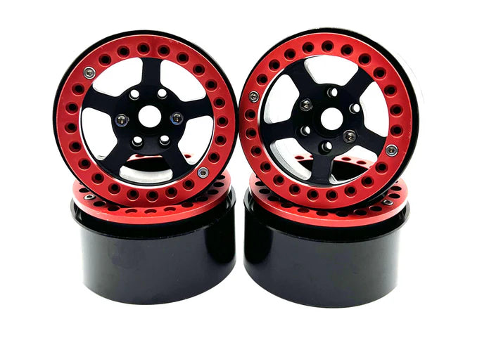 Put the weight right where you want it, and look good doing it with these aluminum beadlock wheels from racers edge. Fits most crawlers with a 12mm hex, and 1.9" tires. Features beautiful black and red anodizing, and a scale appearance.