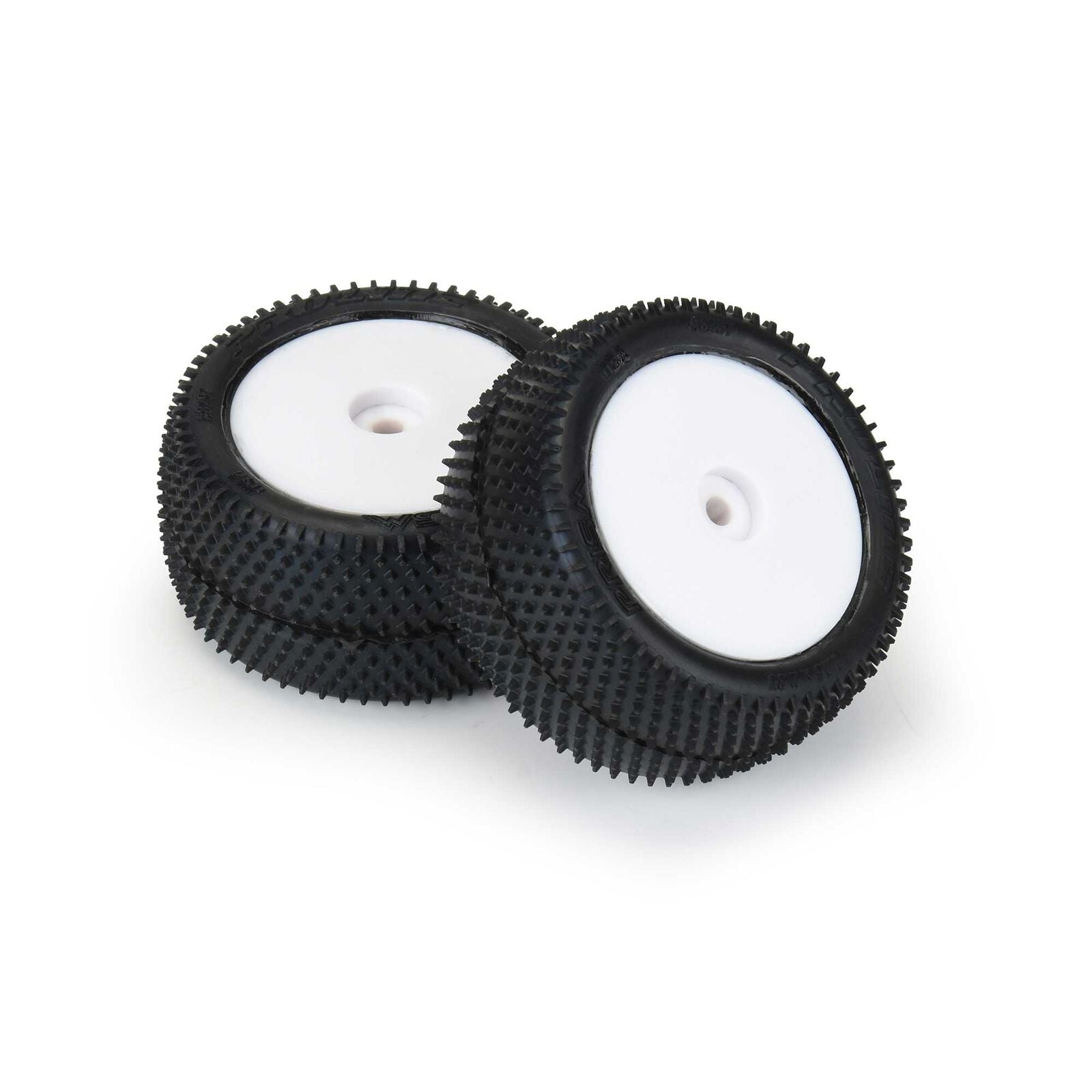 The Mini-B is one of the most exciting new mini vehicles released and Pro-Line is ready to take it to the next level with mini carpet tires. Introducing Mini-B Prism rear tires perfect for racing your friends at the local carpet track! You can even set up a track in your living room! The Prism features Ultra-Sharp Prism-shaped Pins for long-lasting carpet racing tread and very consistent performance. The Prism pins are positioned with the knife edge pointed front to back and side to side for maximum grip and stay sharp even as they wear down. The Prism rear tires are conveniently pre-mounted to White Mini-B rear wheels and are made from a special carpet racing compound. Pair the Prism rear tires with the Wedge front tires (PRO829813) for maximum carpet performance. Don't get left out of the Mini-B carpet fun. Get your own set of Pro-Line Mini-B carpet tires today!