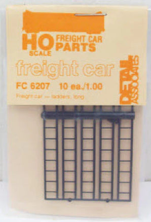 This is a Detail Associates 6207 Ho Scale Long Ladders for Freight Cars. There are ten included in each package.