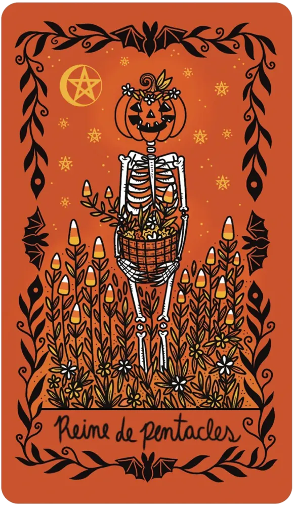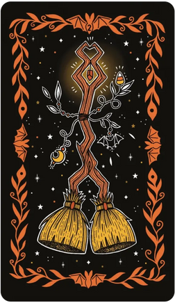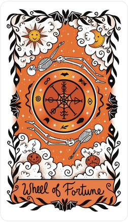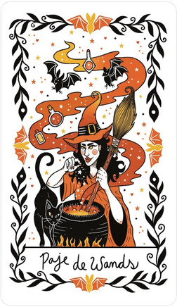 The delightful Happy Halloween Tarot is sure to lift your spirits! Soni Graves found inspiration in iconic vintage Halloween art as well as her own childhood Halloween memories and the joy they brought her. She used a festive candy corn color palette and included her favorite spooky creatures including skeletons, witches, pumpkins and bats. As an homage to her Latin heritage, she chose to use Spanglish titles and gender-neutral descriptions for the Court Cards.