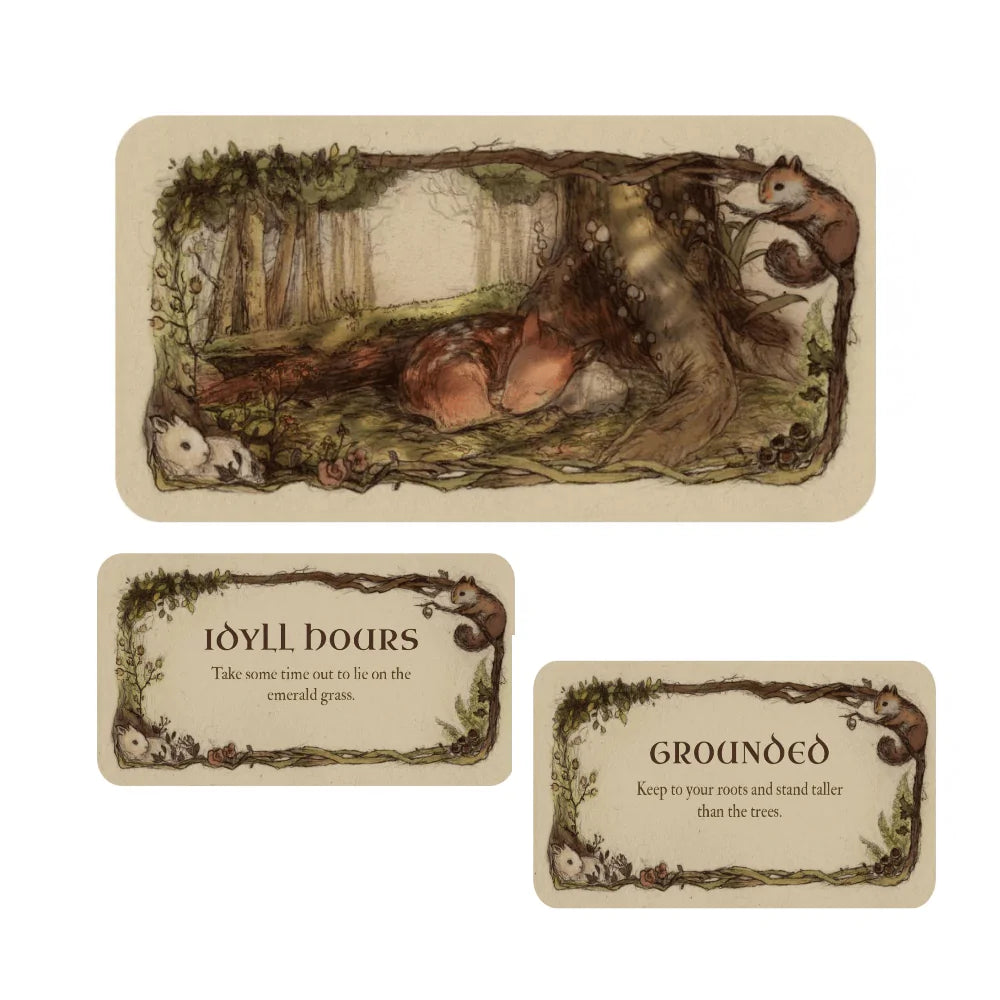 Whispering Woods are a soul-inspired deck of 40 affirmations guided by the ancient wisdom of the woods and the secrets they whisper. Like the immeasurable strength of trees, this deck is a call to your highest self and enables you to find the best answers you need at the right time.