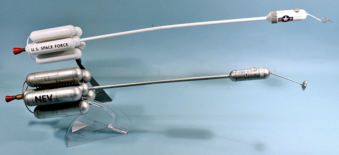 This kit is an early concept vehicle with nuclear power and Lox/LH2 engines. It was to be crewed by four and it was designed for deep space exploration. The design mas made by Krafft Arnold Ehricke, a German rocket-propulsion engineer and advocate for space colonization, in 1954. Completed model is approximately 13 inches long and it includes a clear display base and decal sheet with markings.
