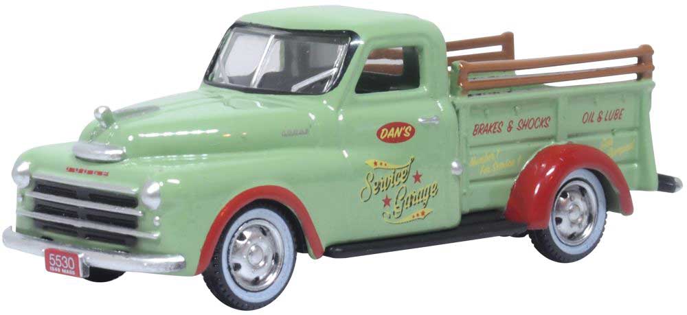 The livery chosen for this third release on the late ‘40s Dodge Pickup shows Dan’s Service Garage to be a very busy place, just looking at the graphics on the vehicle. Dressed in an attractive pale green with maroon masking to the wings, the interior is black. The motor services being offered are printed in pale cream and maroon along the sides and the Dodge name is printed across the back. Dan seems to have expertise with Brakes & Shocks, Oil and Lube and is Number 1 for Service. His Dodge vehicle features wood effect planking in the back, as well as additional side boards. Dan’s Dodge is registered 1948 5530 in Massachusetts.