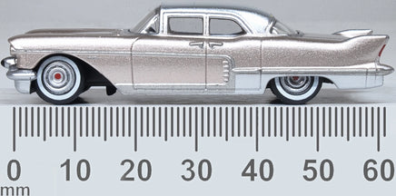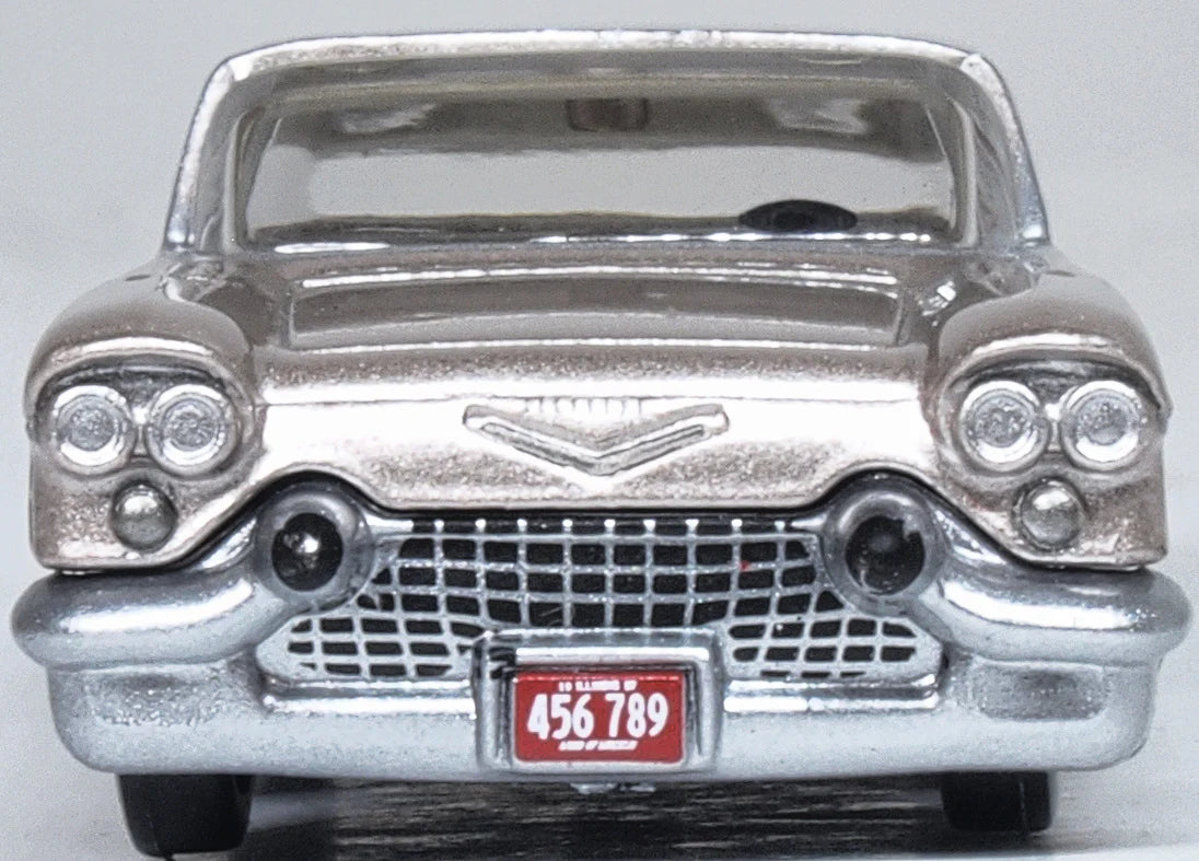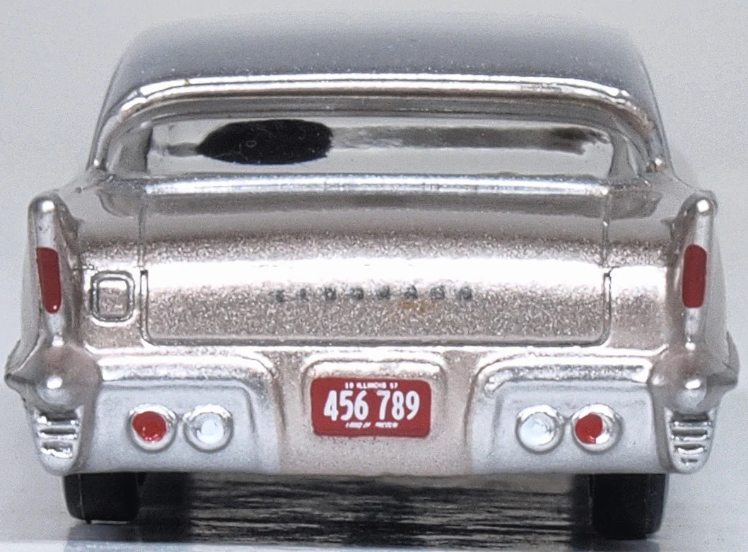 The Cadillac Eldorado was manufactured in the USA between 1952 and 2002 across 12 generations of the marque. Our Oxford replica in 1:87 scale is from the third era, panning the short period between 1957 and 1958, when it was produced with a distinctive body shell and rear wheel drive. With four doors, there was a choice of a convertible or closed top and our Oxford replica is closed. Elegant detailing included low down swept bumpers, elaborate tail fins with a steel ‘beauty panel’ section that ran from the rear wheel arches into the rear bumpers. Even the top edges of the tail fins are finished in chrome while the front bumper came in three sections. All these physical details are here on our replica, decorated in a sandalwood colour scheme with silver roof, in contrast to all the chrome. The interior is honey beige with a grey steering wheel. Our Cadillac hails from Illinois, Land of Lincoln number 456 789 in 1957.