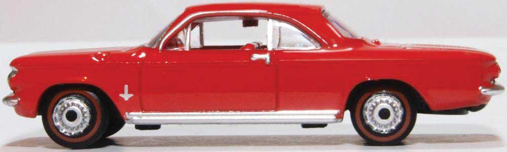 This HO Scale 1963-1970 Chevrolet Corvair Coupe from Oxford Diecast features a die cast metal body, window glazing, interior seats and realistic decoration. This little sports car is great for adding detail to your 1960s and later HO Scale street scenes. This Chevy Corvair Coupe is part of the line of detailed Oxford Diecast HO Scale vehicles.