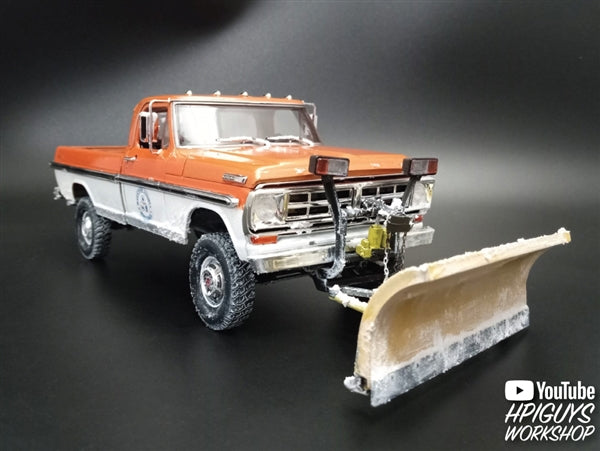 Moebius Models' precision-tooled styrene model kit of the 1972 F-250 Ranger XLT 4x4 features a full OPTIONAL SNOW PLOW CAN BE DISPLAYED IN MULTIPLE POSITIONS interior, detailed chassis and 360/390 CID V-8 engine with NP435 transmission and Dana divorced transfer case. The completed model kit measures over 8 inches long, and includes clear and chrome-plated parts, soft PVC tires, decal sheet and detailed instructions. Paint and cement required for assembly - sold separately.