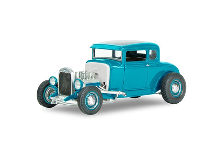 The classic Model A Coupe has been a favorite with street rod builders since the beginning. In the 1950s, old Model A Fords were easy to find and cheap. Times and prices have changed, but the fun of building and driving a street rod has remained the same. Now, aftermarket suppliers offer just about every part you could want or need for your street rod. Kit features detailed small block V-8, two different frames to choose from, choice of two interiors, and soft black tires.