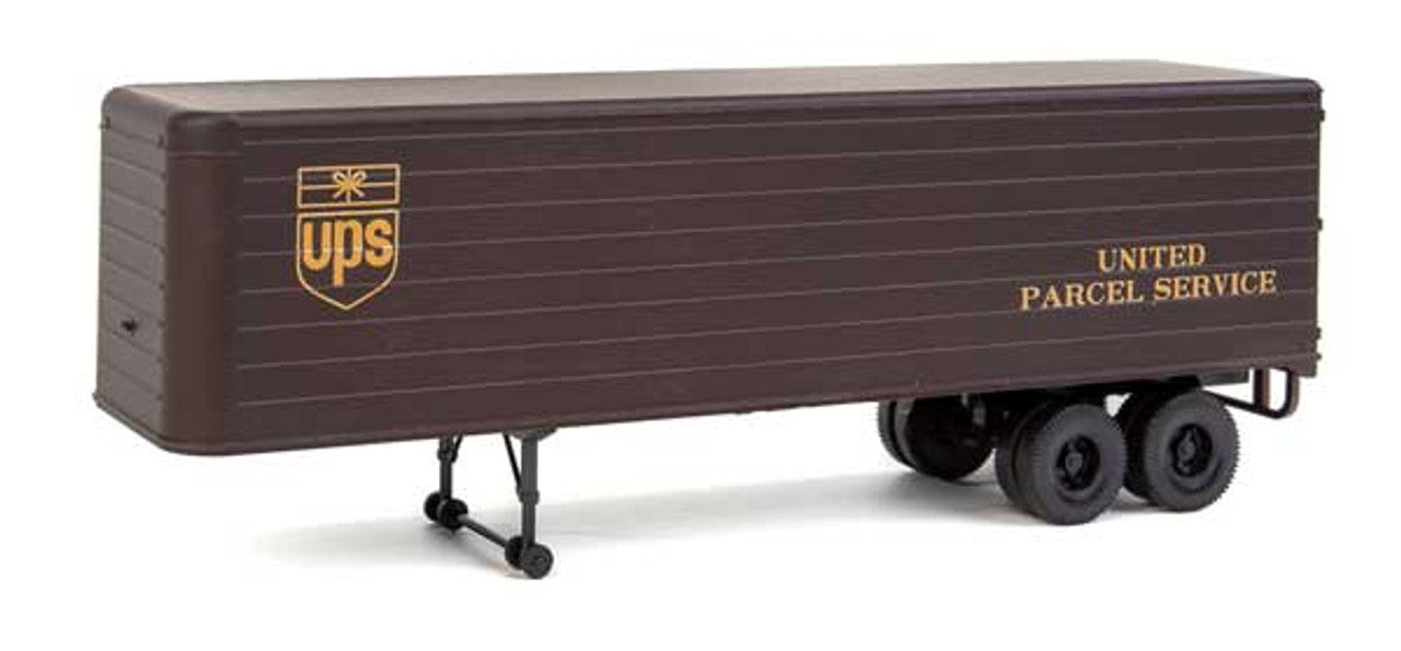 Expand UPS(R) service anywhere along your HO layout with this SceneMaster Fluted Side Trailer 2-Pack! Highly detailed and perfect for layout or collection, it's based on equipment used by United Parcel Service in the 1950s and 1960s. The set includes two trailers finished in the correct brown, with the original bow tie logo and United Parcel Service lettering in gold. Optional landing gear in the up (transport) and down (parked) positions is also included.