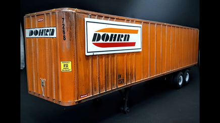 This kit comes loaded with a ton of authentic details, including an operating “Select-a-point” sliding suspension, 2 position support assembly–build it raised and “ready to roll” or lowered for static display, movable doors that swing open to reveal fully detailed floor and body panels, and an authentically detailed F-2 tandem suspension. Also includes 8 Goodyear truck tires to build 4 “Spyder” spoke dual wheel assemblies and an expanded set of water-slide decals featuring Dohrn livery.