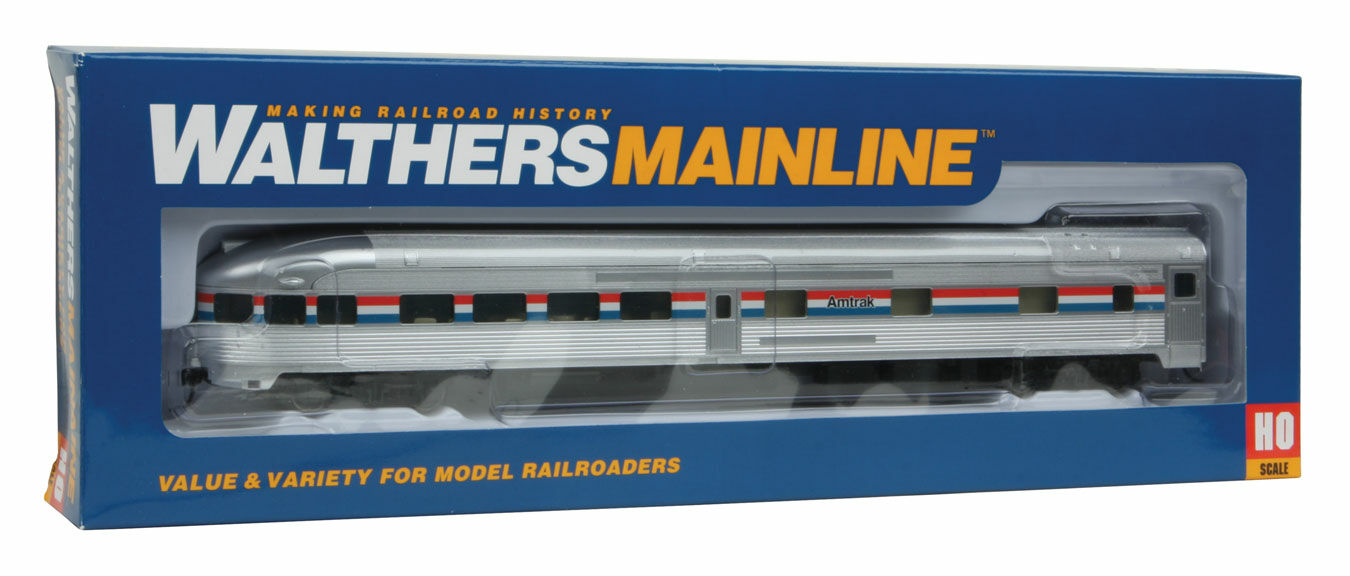 Add luxury lounge space on your classic streamliner quickly and easily with this WalthersMainline HO Scale 85' Budd Observation! A common car on many trains, the trademark "boat tail" end of the car offered riders a receding view of the rails through wrap-around windows as they relaxed with their favorite beverages or snacks. Nicely detailed, affordably priced and built tough for years of dependable service, this car is based on fluted-side cars used my many North American railroads. 85' Budd observation are perfect for use with other WalthersMainline HO Scale streamlined passenger cars.
