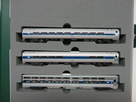 Kato N scale Amtrak Phase VI Amfleet Viewliner innercity express 3-car set.