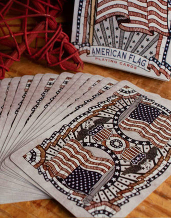 Bicycle is an iconic American brand proudly made in the USA for over 130 years. The Bicycle American Flag Playing Cards celebrate our American heritage and history. These hand-illustrated cards feature images of the stars and stripes in unique pips and face cards, and include references to the brand's historical card back and tuck design.
