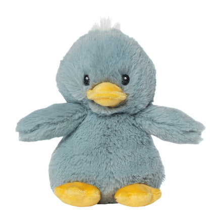 Plump and perfectly sized for little hands. Bitty Buddies Blinken is super soft with a dusty blue body, cream colored tuft, weighted bottom, and embroidered eyes. The roly-poly tummy paired with stubby wings and contrasting yellow beak and feet add to this little one’s charm. Is it a chick or a duckling? You decide!
