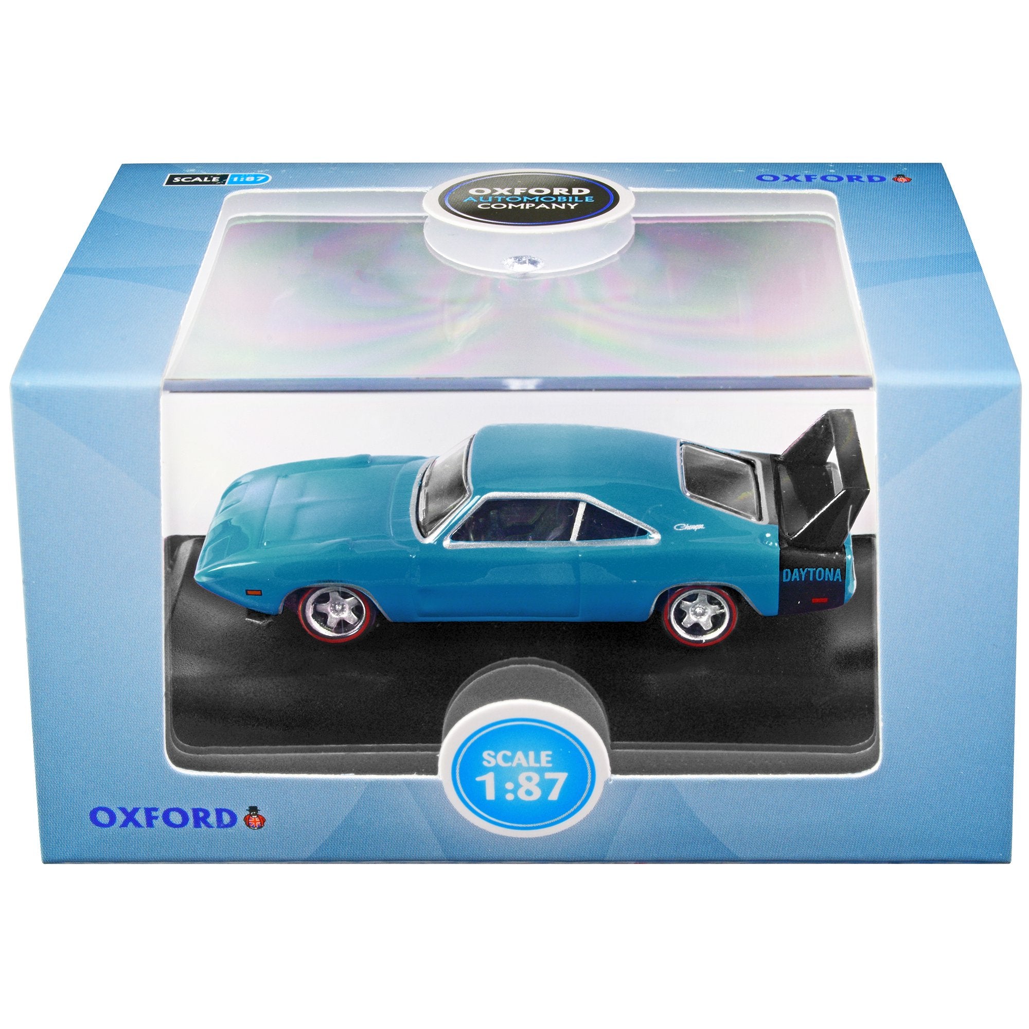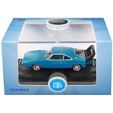 - Brand new 1/87 (HO) scale diecast car model of 1969 Dodge Charger Daytona Bright Blue with Black Tail Stripe die cast model car by Oxford Diecast.
