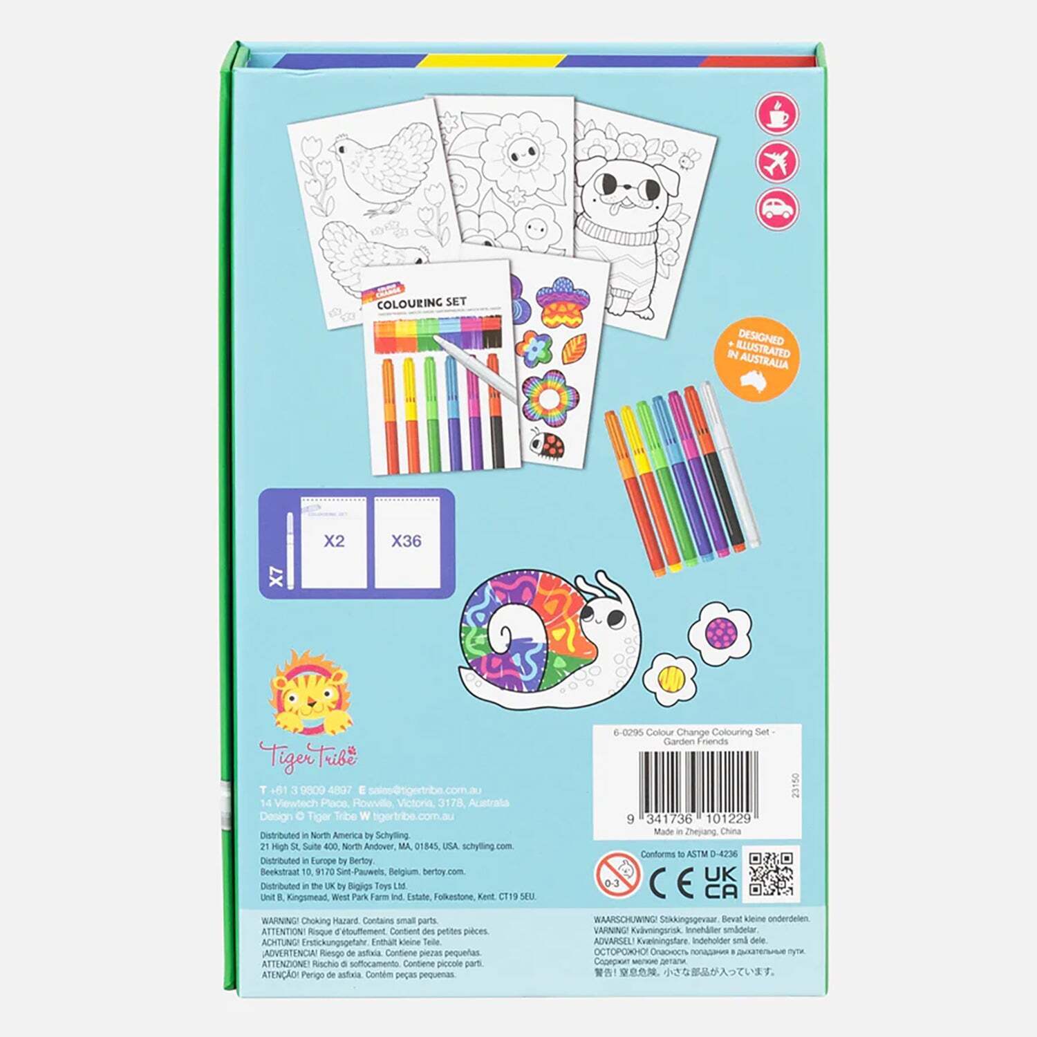 Playful kittens, chubby chooks and buzzing bees frolic in this Colour Change Colouring Set, perfect for little creatives keen to bring their garden friends to life in vivid hues.