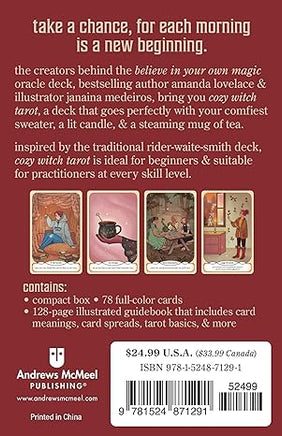 The creators behind the believe in your own magic oracle deck, bestselling author Amanda Lovelace & illustrator Janina Medeiros, bring you cozy witch tarot, a deck that goes perfectly with your comfiest sweater, a lit candle, & a steaming mug of tea.