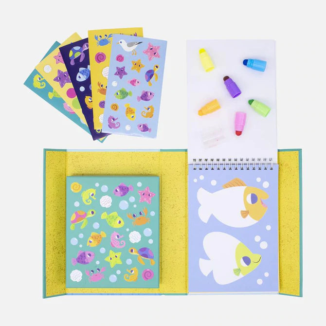 Everyone loves a beach day, now you can enjoy it from home with this adorable coloring set. Complete and color in 36 beach-themed pages, then add some stickers! Recommended for kids 3+