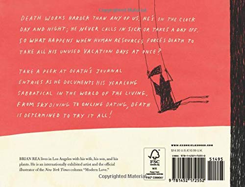 Death never takes a day off. Until he gets a letter from the HR department insisting he use up his accrued vacation time, that is. In this humorous and heartfelt book from beloved illustrator Brian Rea, readers take a peek at Death's journal entries as he documents his mandatory sabbatical in the world of the living. From sky diving to online dating, Death is determined to try it all! Death Wins a Goldfish is an important reminder to the overstressed, overworked, and overwhelmed that everyone, even Death, deserves a break once in a while.