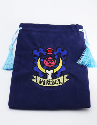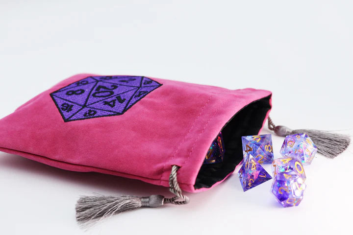 This dice bag is big enough to hold several sets of dice while not being bulky. It has an embroidered design on faux suede with a drawstring closure. No matter your style- or RPG class- there's bound to be one for you and your dice!