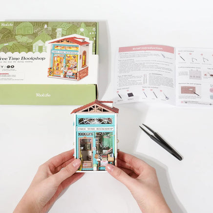 DIY miniature model bookshop for crafters and collectors of all ages. Follow the included detailed instructions or add your own creative touch!