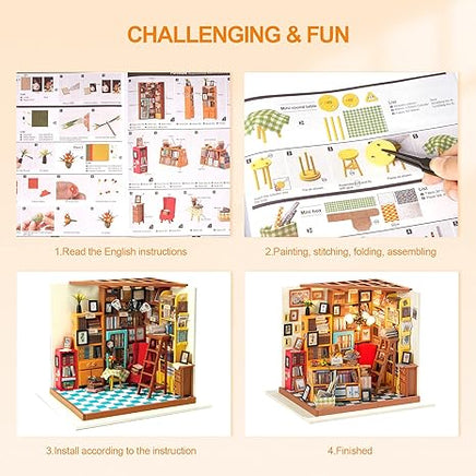 Sam's Study is perfect for you whether you're a veteran miniaturist or a beginner! This little library will keep you busy as you design and create your perfect little space. Kids and adults alike can enjoy our miniatures.