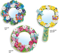 Create a beautiful paper and foam collage mirror; overlay layers of leaves and flowers and add foam stickers to build a multi-level collage with volume, depth, and texture, the finished project looks like a wreath of fresh flowers. Contains 3 sturdy child-safe acrylic mirror frames, each about 6 inches in diameter, 170 individual embellishments, glue dots, 3 plastic hangers, and an illustrated instruction booklet. Helps develop motor skills, artistic design, creativity, cognitive development 3-dimensional visual reasoning.