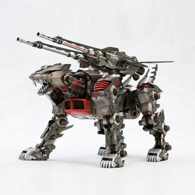 Guylos Empire’s high-speed assault Zoid “Lightning Saix” joins the lineup once again with new content seen in a new decal! This model’s “attack form” comes to life with Lightning Saix’s red fins and sharp-edge armor. The model’s unique form boasts an impressive range of articulation and flexibility, allowing it to be displayed in a variety of dynamic action poses. Each weapon included in this model kit boasts an expansion feature for users to play with.