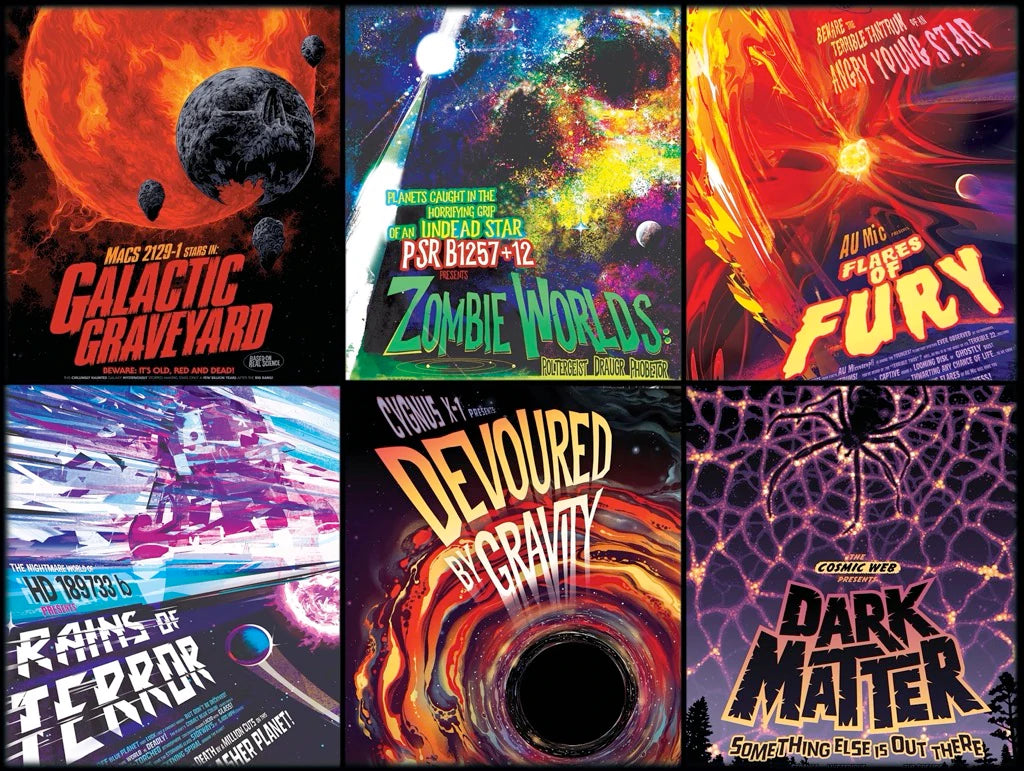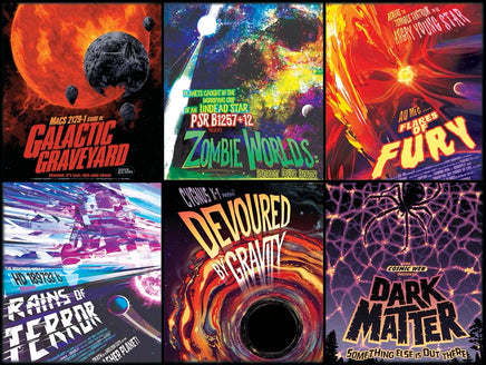 Enter the Galaxy of Horrors in this fun puzzle! Each poster shows an eerie destination in our galaxy and beyond. Will you ever want to leave Earth again after visiting these nightmare worlds?