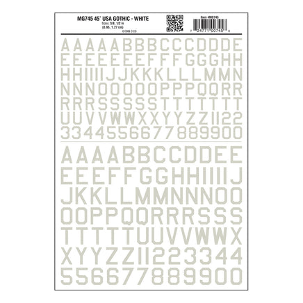 Add graphic touches and create your own custom signs with these Woodland Scenics Dry Transfer Decals in White 45 USA Gothic Font.
