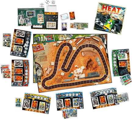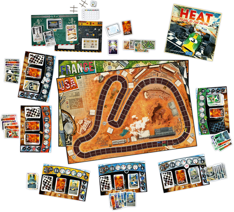 Based on simple and intuitive hand management, Heat: Pedal to the Metal puts you in the driver’s seat of intense car races. You are jockeying for position to cross the finish line first, while managing your car’s speed if you don’t want to overheat. Experience the thrill of a single race or use the Championship System to play a whole season in one game night, customizing your car before each race to claim the top spot of the podium.