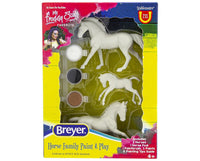 Create your own horse family with this fun kit! Good for beginners, yet challenging enough for more experienced painters. This fun set contains 3 Stablemates: mare, stallion, and foal; 3 paint pots; 1 paintbrush; and 1 instruction booklet. Everything you need for an entertaining, indoor activity!