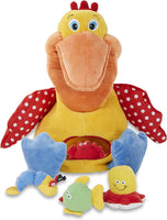 - Cuddly plush pelican toy to feed with plush sea creatures again and again