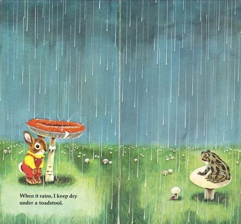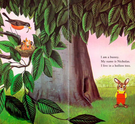 I am a bunny. My name is Nicholas. I live in a hollow tree. In the spring, Nicholas picks flowers and chases butterflies, and in the summer, watches the frogs in the pond. In the autumn, he sees the animals preparing for the winter. When winter comes, Nicholas watches the snow falling from the sky, then curls up in his hollow tree and dreams about spring. In print for well over 50 years, this beautifully illustrated, gentle story has been a favorite Golden Book for generations, written by Ole Risom and illustrated by Richard Scarry.