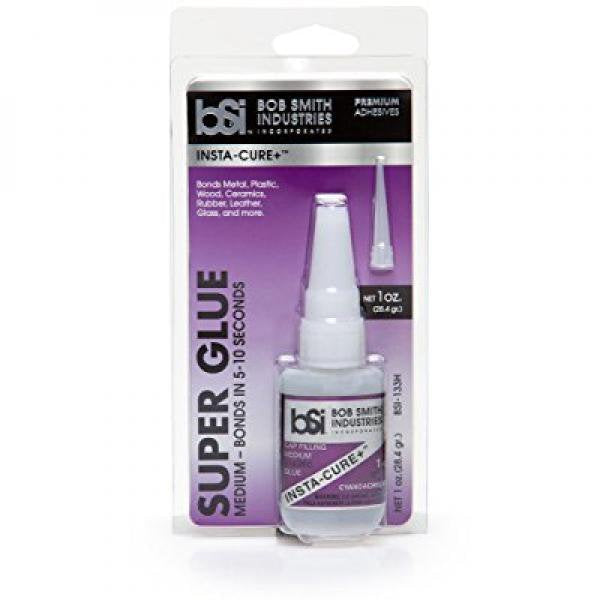 Insta-Cure+ is a higher viscosity CA for loose fitting joints in which the adhesive must bridge gaps. Normally, the thicker CA is applied to one surface and then the parts are held tightly together for about 5 to 15 seconds. For large surface areas, including those with close fitting joints such as lamination's, INSTA-CURE+ should also be used. To prevent premature curing, don’t spread the glue into a thin film. Lay down a serpentine bead with about 1" separations on one surface, then assemble the parts, letting the pressure spread the CA out.