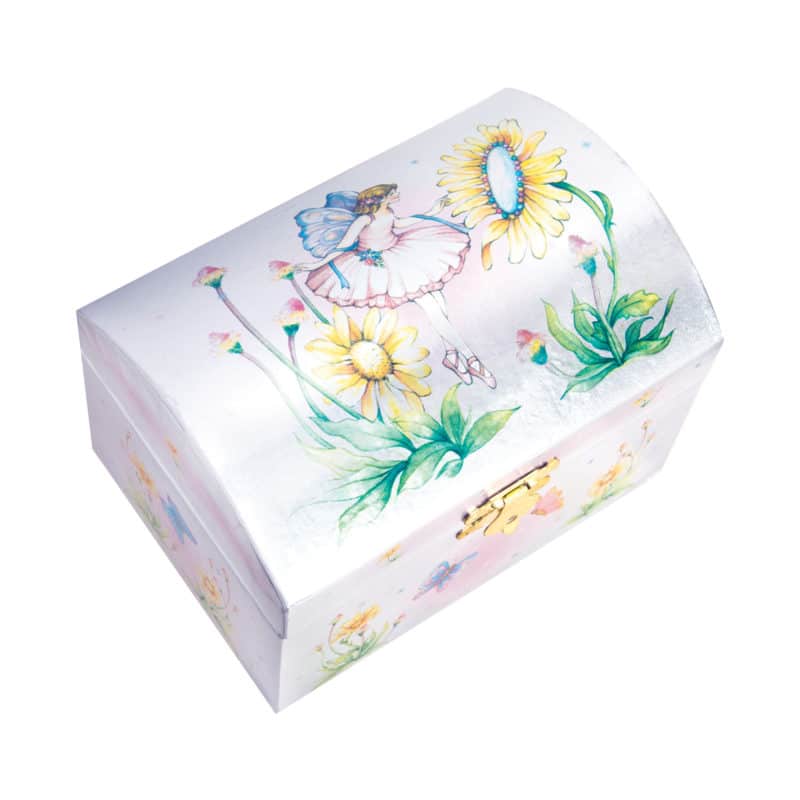 • Lift the lid, and a three-dimensional fairy twirls against the backdrop of an oval mirror