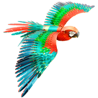 Macaws are a group of 17 species of spectacularly colorful parrots from South and Central America and Mexico. They are known for their great intelligence and playfulness. Macaws are long-lived, and often kept as pets. The Jubilee Macaw is a cross between a Harlequin Macaw and a Green-winged Macaw.